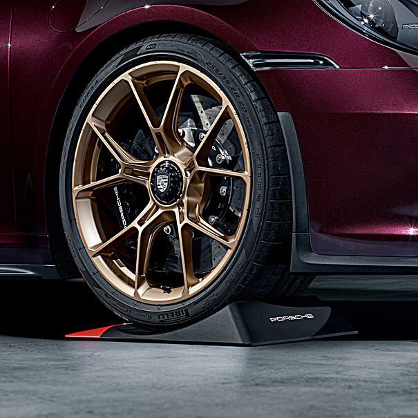 Om de Porsche in de garage op de meest elegante manier te positioneren: De ParkDistance Pads, ontworpen door de firma F. A. Porsche in Zell am See, beschikken over een op race-circuits gebaseerd rood-wit curb-design en een „PORSCHE“ logo op de achterzijde. Door het rijden op de pads van ca. 5 kg kan het voertuig veilig op de daarvoor bedoelde plaats worden geparkeerd. Zo wordt voorkomen dat tegen de wand van de garage of obstakels wordt gereden. De pads bestaan uit een thermoplastisch elastomeer en zijn bijna volledig van recyclingmateriaal gemaakt. Voor eenvoudige verplaatsing beschikken ze over een handgreep aan de onderzijde. Geschikt voor alle wielen tot een grootte van 22 inch.