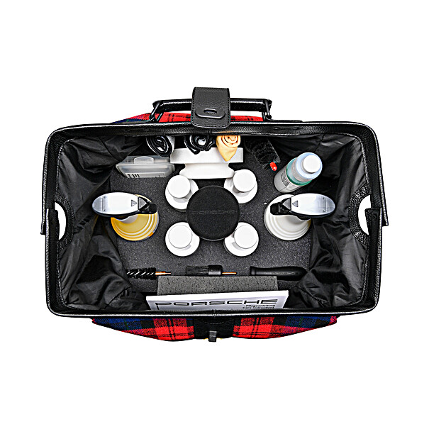 De relatie met uw Porsche is iets heel bijzonders – en vooral langdurige relaties moeten worden gekoesterd. De 17-delige verzorgingsset van Porsche Classic is hiervoor de beste manier. Het bestaat uit een combinatie van verschillende producten voor het gehele exterieur en is geschikt voor alle Porsche lakgeneraties. In eigen beheer ontwikkeld: alle meegeleverde verzorgingsproducten zijn onder de zwaarste omstandigheden getest en precies afgestemd op de eisen van uw voertuig. Bijzonder authentiek: de hoogwaardige opbergtas in klassieke stijl met Schotse ruit-patroon.