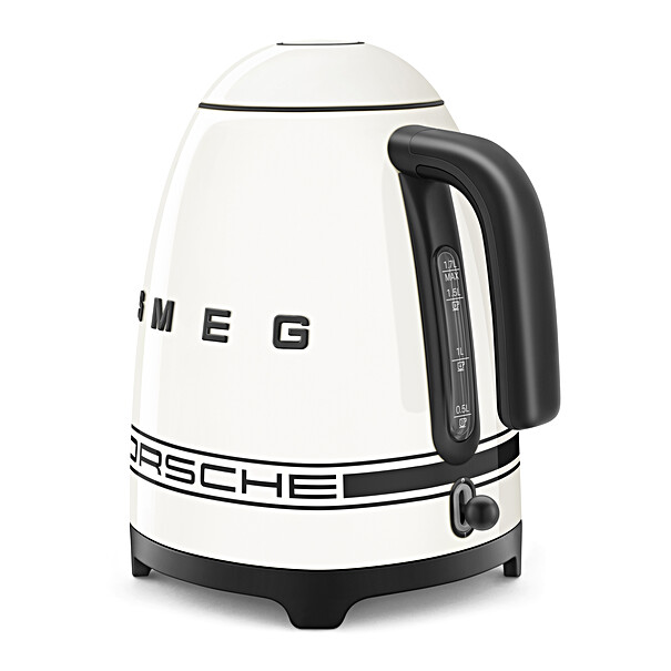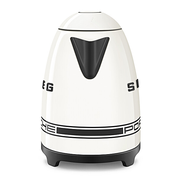 Een keukenapparaat met een opvallend karakter: helder van vorm, nauwkeurig in functie. De iconische jaren 50-look van Smeg wordt gecombineerd met de puristische designtaal van Porsche: mat-zwarte accenten op de handgreep, voet en tuit, plus de karakteristieke Porsche-streep op de behuizing.