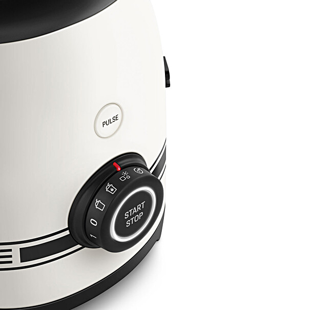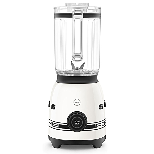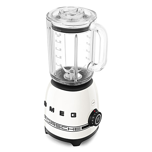 Een keukenapparaat met een opvallend karakter: helder van vorm, nauwkeurig in functie. De iconische jaren 50-look van Smeg wordt gecombineerd met het puristische design van Porsche: matzwarte accenten op de basis, bedieningsknop en details van de mengkom, evenals de karakteristieke Porsche-streep op de behuizing, geven de blender een opvallende uitstraling.