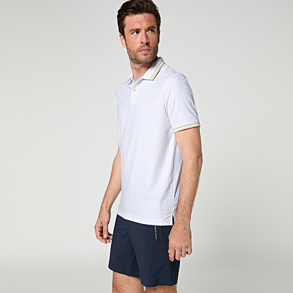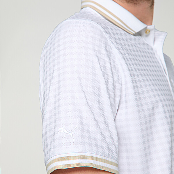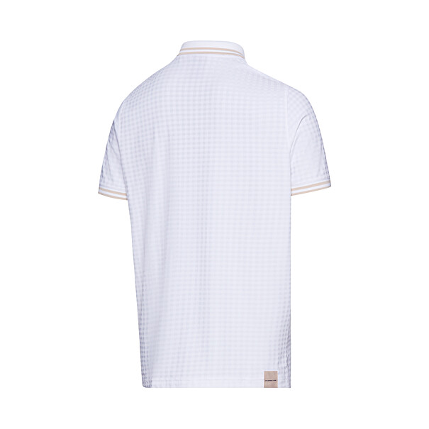 Stijlvol op en buiten de baan: de 911 Targa 60Y collectie koppelt retrocharme aan een tijdloos design als eerbetoon aan het 60-jarig jubileum van de sportwagen. Het poloshirt overtuigt door het ton-sur-ton pepita-patroon, uitgevoerd in hoogwaardig jacquard-stretchmateriaal. De elastische stof die zorgt voor maximale bewegingsvrijheid maakt de polo tot de perfecte metgezel voor optimale prestaties op de golfbaan.
