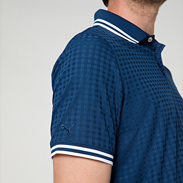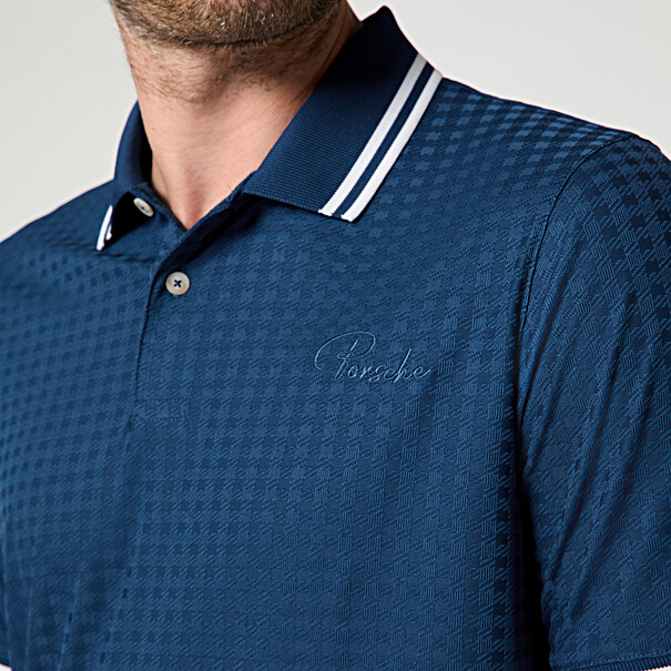 Stijlvol op en buiten de baan: de 911 Targa 60Y collectie koppelt retrocharme aan een tijdloos design als eerbetoon aan het 60-jarig jubileum van de sportwagen. Het poloshirt overtuigt door het ton-sur-ton pepita-patroon, uitgevoerd in hoogwaardig jacquard-stretchmateriaal. De elastische stof die zorgt voor maximale bewegingsvrijheid maakt de polo tot de perfecte metgezel voor optimale prestaties op de golfbaan.